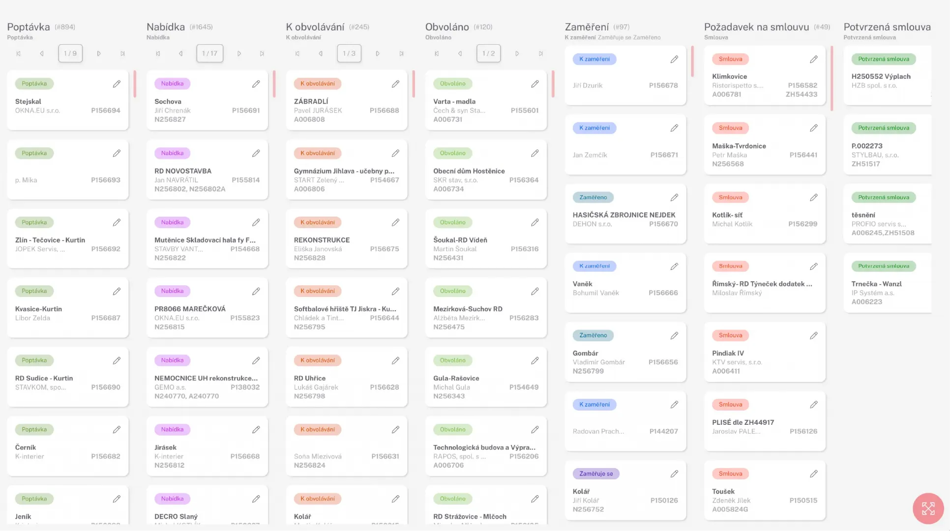 Společnost Decro eviduje v portálu kompletní obchodní proces včetně poptávek, které nejsou realizovány. Pomocí workflow zakázky a kanbanů přehledně řídí cestu zakázky od obchodní komunikace se zákazníkem až po dodávku a servis.