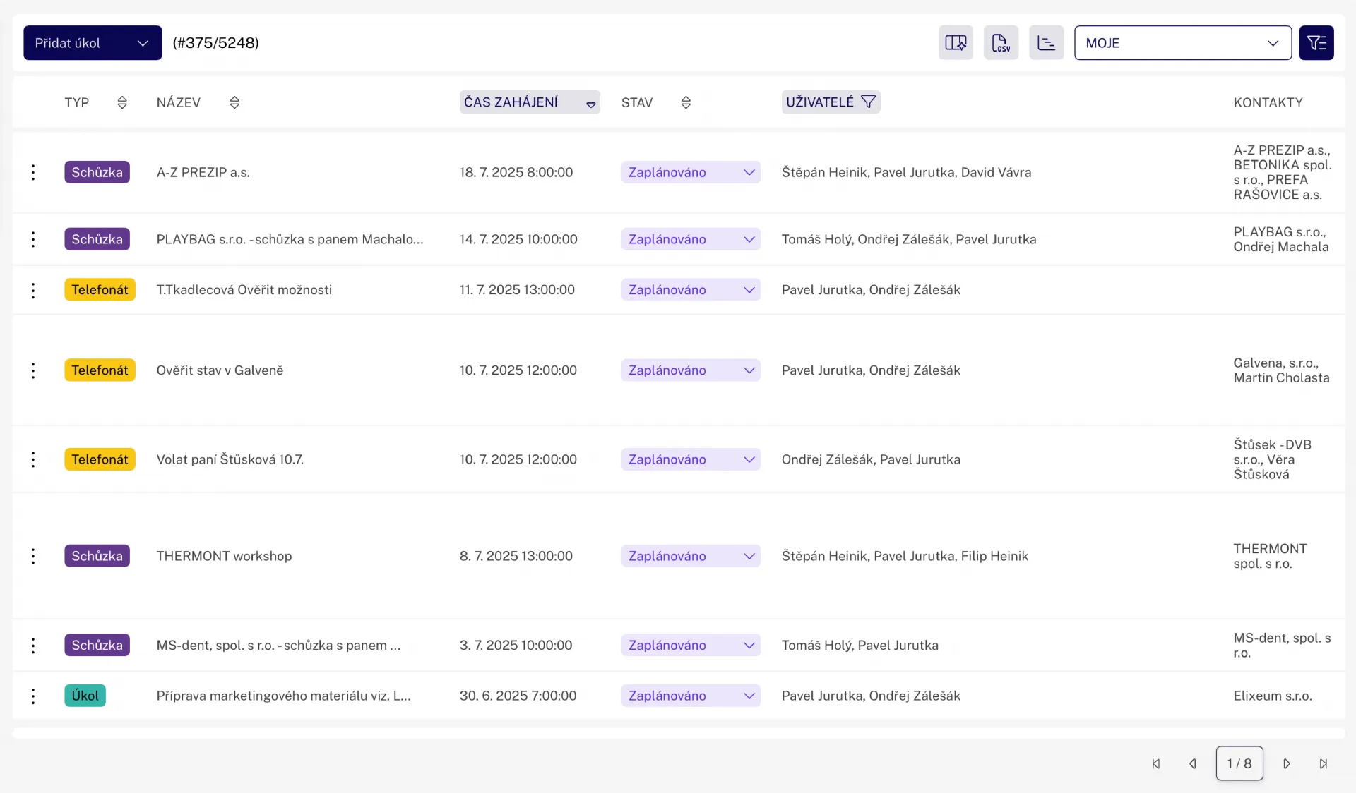 Pomocí aktivit docílíte úplné evidence všech událostí, které ovlivňují projekt. Plánování schůzek, emailů, telefonů. To vše lze plánovat, sledovat v kalendáři a mobilní aplikaci. A nejen to.